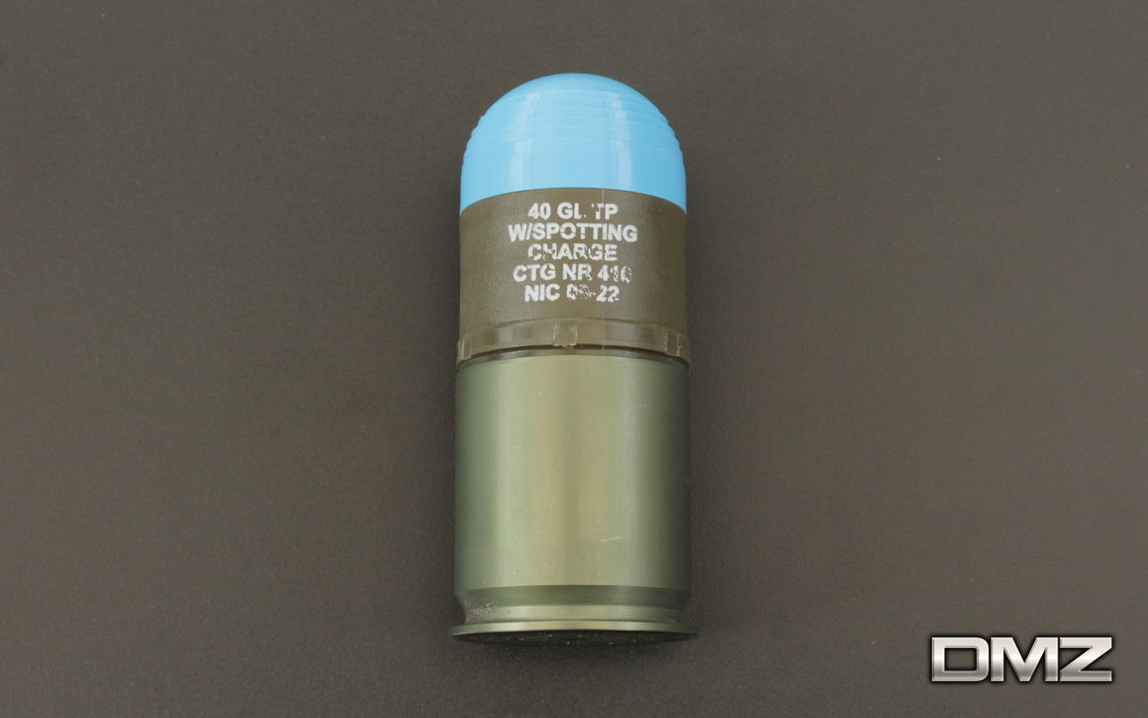 40x53mm is a high velocity grenade with links used in automatic grenade launchers, typically mounted on vehicles but can also be deployed on a tripod. 40x53mm grenades cannot usually be used in underslung launchers without damaging the device and the operator.